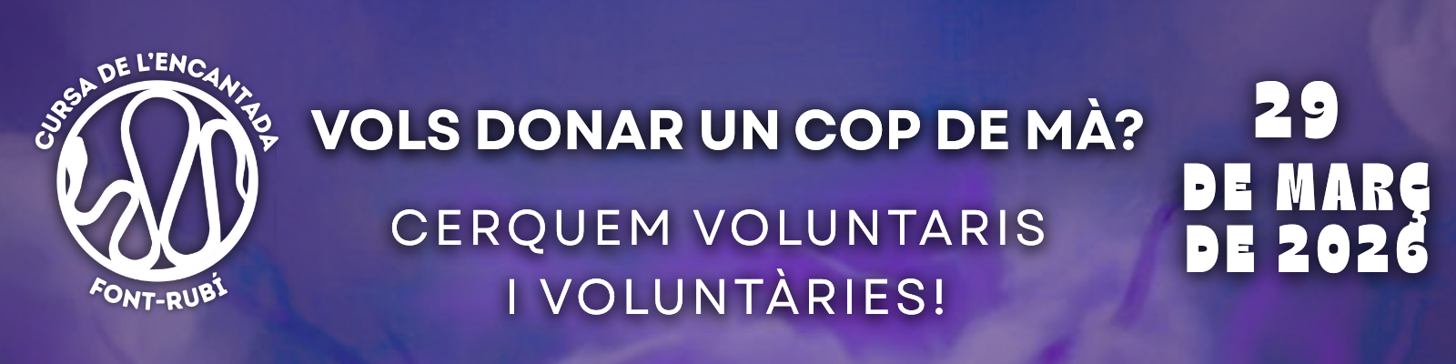 Si tens disponibilitat el diumenge 29 de març al matí i ganes de donar un cop de mà, apunta-t’hi omplint el formulari de voluntariat: Accedeix al formulari!