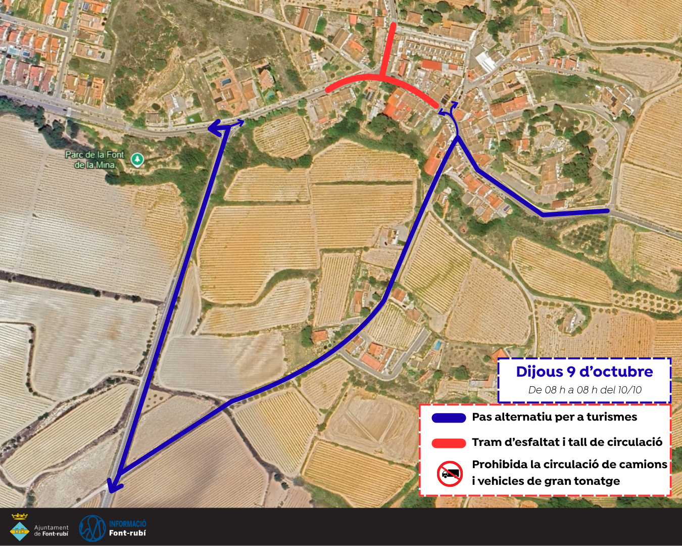 El tall afectarà la part final de l'accés pel Carrer Font-rubí (BP-2126) i l’Avinguda Catalunya. El pas alternatiu serà per l’Avinguda Catalunya, el Carrer Vicenç Marí i la carretera BV-2151. Tampoc es permetrà la circulació de vehicles pesants.