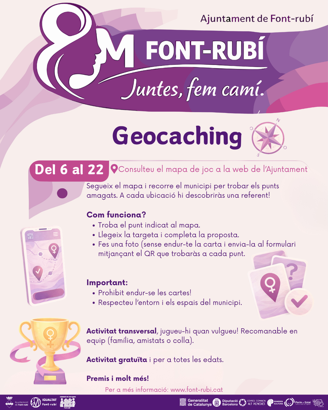 Activitat a l’aire lliure en format geocaching per descobrir, a través de diferents punts del municipi, referents feministes vinculades al territori.
